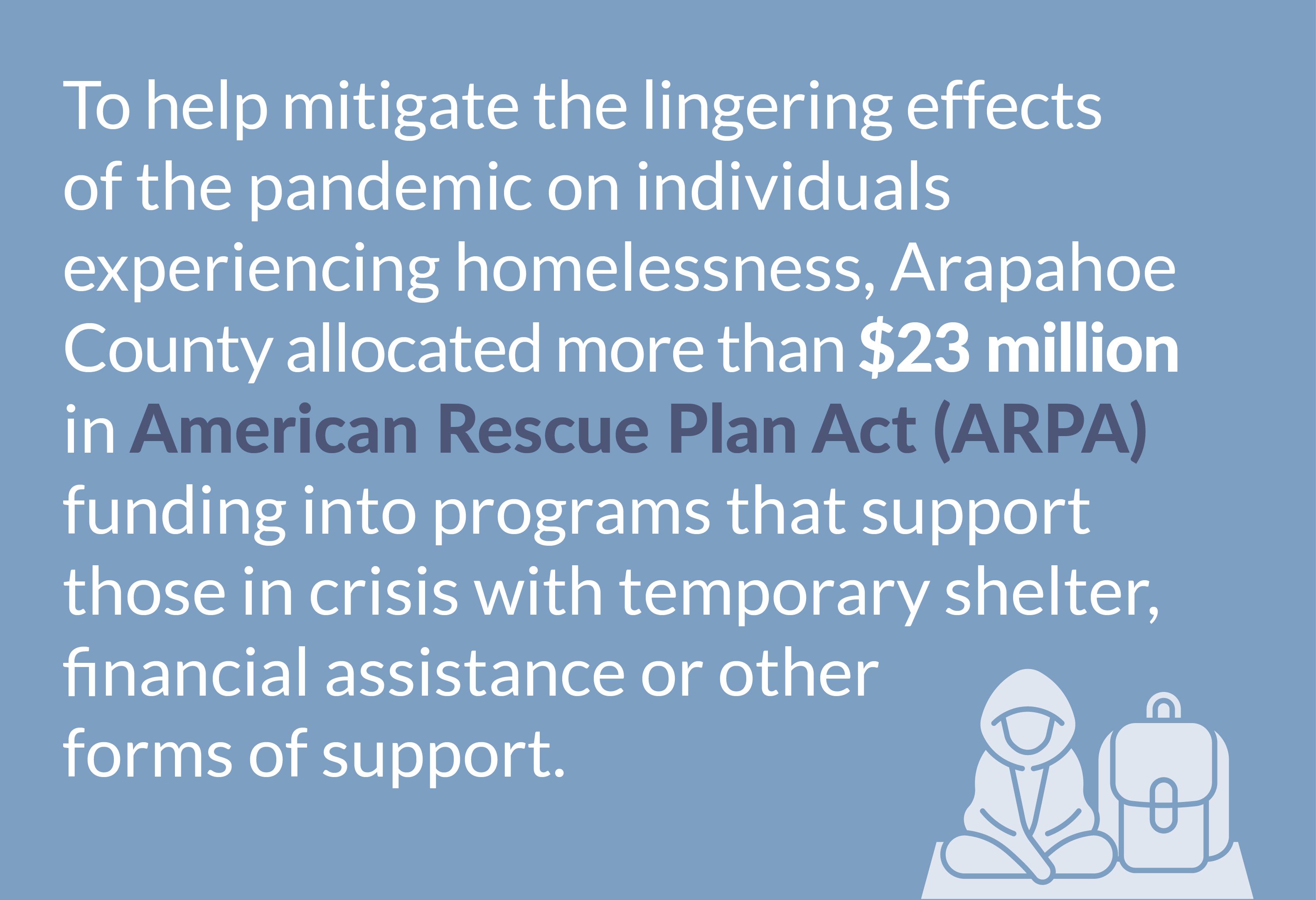 When our neighbors struggled to make rent during the pandemic, Arapahoe County rushed in with help, distributing more than $23 million in emergency rental assistance to more than 3,800 families. This one-time funding from the American Rescue Plan Act (ARPA) allowed these families to stay in their homes without the fear of eviction.
